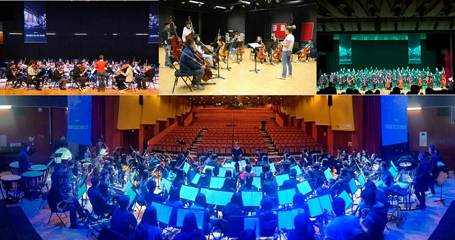 The performance practice disciplines are into four groups: Rock Band, Orchestra, Big Band and Choir. The students select what they would like to work on and we allocate spaces for them to work with other students from the network of Dulwich Schools. Following on from this they are given material from the theme. Over three days they practice hard and perform on the Saturday night in front of an excited audience of parents, teachers and members of the community.