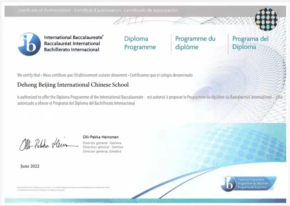 It is an honour to announce that Dehong Beijing International Chinese School is officially an IB World School and will offer the diploma programme. Our first cohort of Grade 11 students will undertake the two-year programme beginning in September 2022. We would like to thank the school’s leadership team, administrative team, all teachers, parents, students involved for their support throughout the authorization process. The IB visiting team appreciated that the entire school community demonstrated understanding and commitment to the IB diploma programme. The IBDP is recognized across the world for its innovative approach to education placing an equal focus on academics and other, transferable skills, in order to best prepare students for success beyond school – Due to the concept-based nature of the IB, Dehong students will be able to apply these knowledge and transferable skills to any real life situation, going well beyond the classroom and helping them succeed in the future, both in their local and global communities.