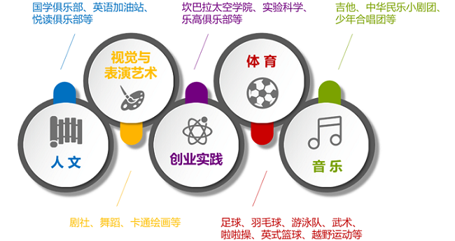- 多元化艺术系列:多元化系列的活动中,世界级视觉和表演艺术家汇聚一堂,给我们的学生开设工作坊和大师班。我们的合作伙伴有:英国皇家北方音乐学院、伯克利音乐学院和奥克兰大学舞蹈团等。