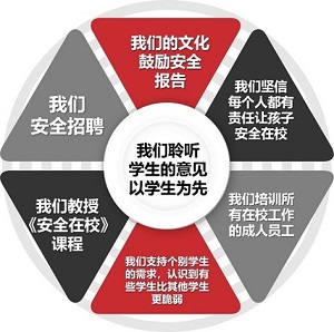 7项指导原则构成了整体框架和所有相关政策的基本内容,其中一份重要的文件是《德闳安全在校行为准则》,所有在校工作或为学生提供志愿服务的成年员工都需要签署。