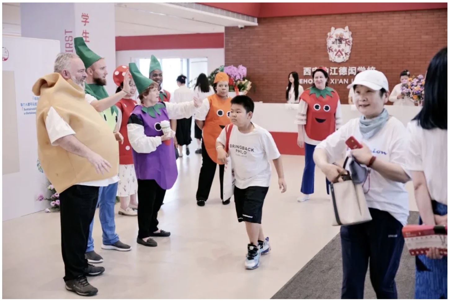 创校日现场充满了绿色低碳的元素。创意集市诠释了“每个人的行动都在构建负责任的社区”,展示了万物循环、校服的旅程、和性别平等主题。每一个集市或展台都以可持续发展为主导,展现了不同的环保理念。而闪光垃圾秀中,孩子们穿着用了垃圾袋、塑料泡泡、废弃布料等环保材质,由家长一针一线地缝制而成的环保服装,走上T台,展示他们的自信和风采。通过这种独特的方式,不仅让孩子们体验到了环保的意义,更让他们在实践中理解了可持续发展的重要性。