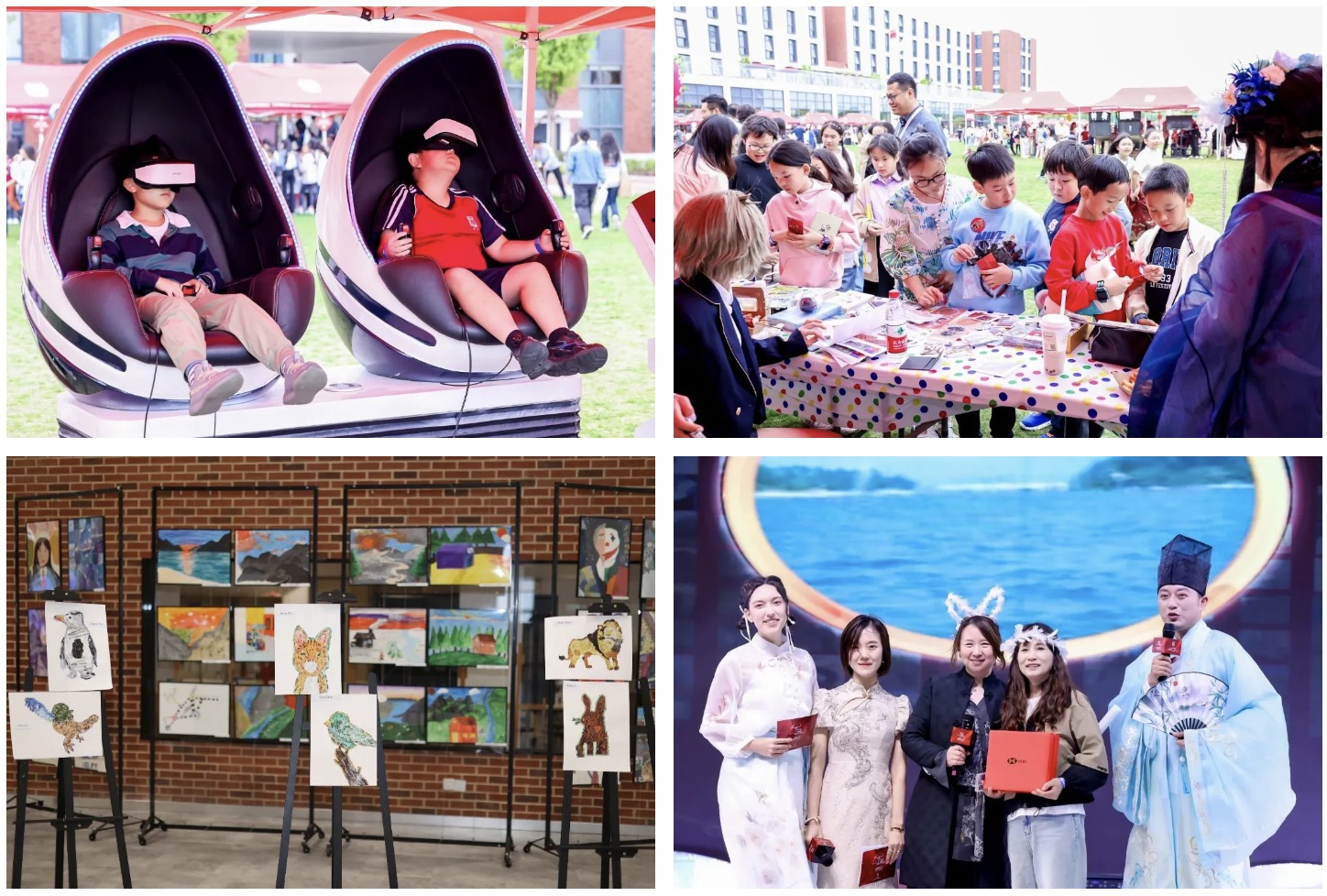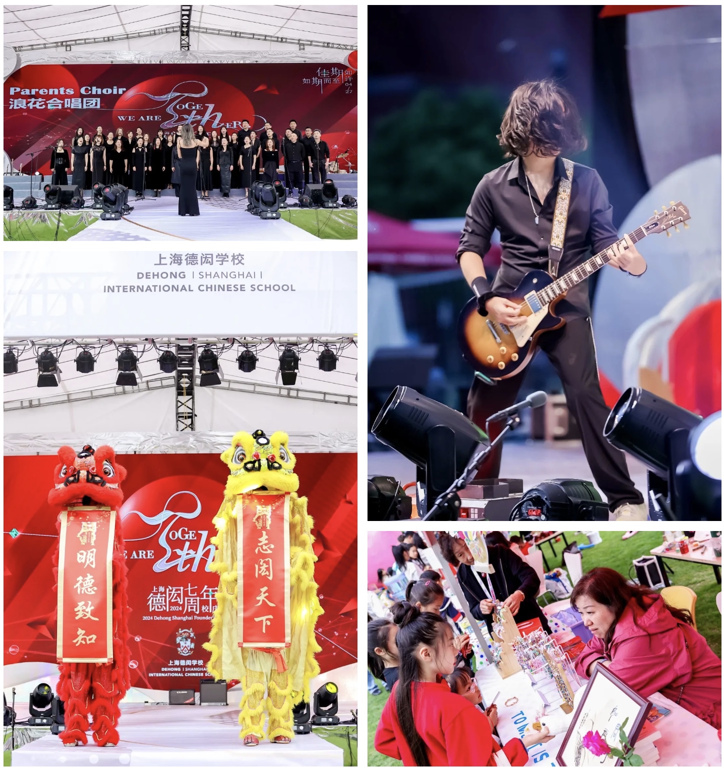 舞台上精彩绝伦的歌舞乐器表演、令人惊叹的科学秀、充满力量感的空手道和中国武术轮番登场,彰显了上海德闳大家庭的多元文化,也象征着传承与创新的交融。教室里学生们丰富多彩的学术与艺术作品展现了德闳学子们的才华与努力,也诉说着学校如何助力学生全面发展。运动场上师生家长的每一次拼搏、每一次跳跃更是凝聚着德闳社区的关爱与关怀。慈善义卖中,各类图书、文具、玩具,还有孩子们亲手创作的书画、手工艺品等等,每一份都承载着爱心与希望,为校庆增添一份特别的温暖。