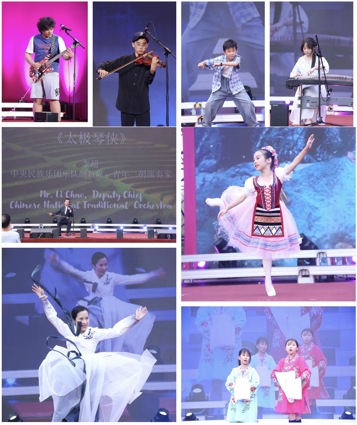 舞台上的国潮元素更是远不止这些。学生与老师们纷纷登台,带来“十八般武艺”,二胡独奏、古筝钢琴二重奏、京剧、武术、民族舞蹈,给现场观众强烈的视听盛宴。值得一提的是,今年的校庆更是重磅邀请到了中国爱乐乐团和中央民族乐团的音乐家亲临现场奏响乐章,经典的旋律,动人的乐章,更是让人深感经典之美,文化之韵。