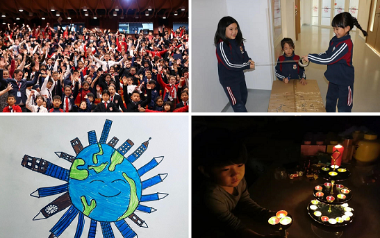 右下:2020年3月28日,德闳师生积极响应“地球一小时”活动,集体熄灯停电一小时,为节约世界能源贡献力量。