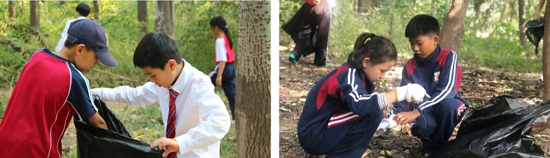 #森林由我们守护# 德闳校园紧邻波光粼粼的运河和植被丰富的森林,因此造就了学生户外探索的天然基地。然而,乱扔的垃圾对森林造成了不小的污染,师生和家长集体出动,组队清理。