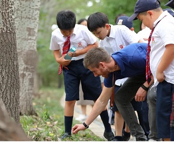 还记得攀登马达加斯加八座高峰的全球第一人英国极限探险家Ash Dykes曾来校演讲,分享自己十年间的奇妙经历。并带领孩子们在森林里开启了一场难忘的探秘活动,他一边科普树木纹理的知识,一边讲解昆虫鲜为人知的秘密。他说:“我是一个来自英国威尔士小镇的普通男孩,没有钱,没有受过特殊训练,甚至没请过专业指导,但我的经历证明,勇敢一些,看似遥远的梦想也能实现。”