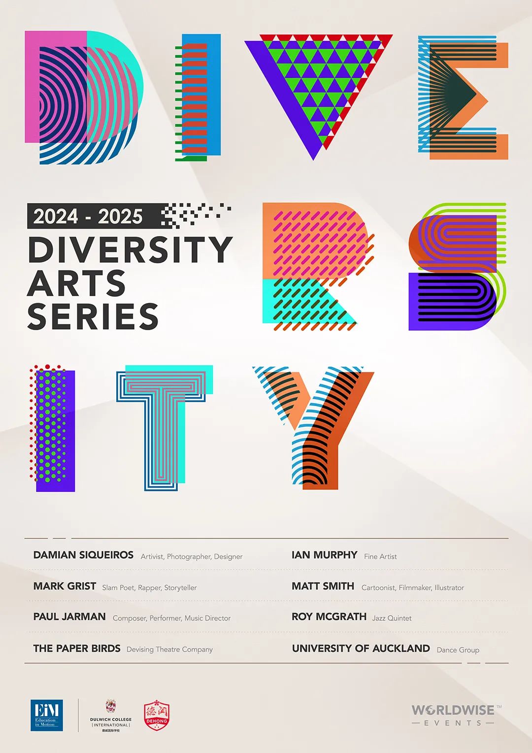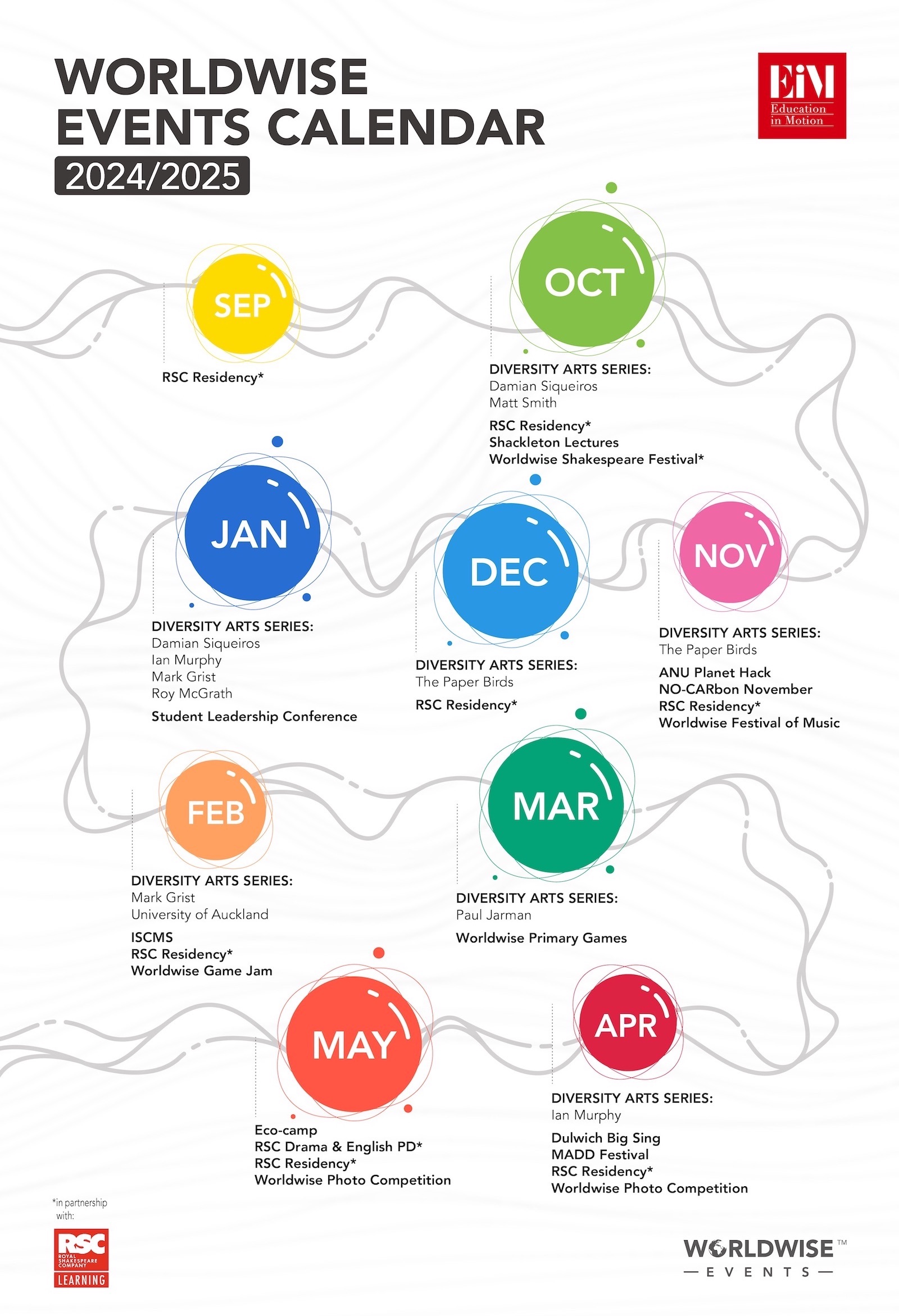 今年的亮点之一是“Diversity多元化艺术系列”,该系列将邀请全球知名的音乐家、诗人、艺术家和舞蹈团体前来举办超越传统课堂学习的工作坊和表演。另外,与皇家莎士比亚剧团(Royal Shakespeare Company)的持续合作将再次呈现万众瞩目的RSC驻校项目、Worldwise莎士比亚艺术节以及戏剧与英语专业发展课程,为学生和教师提供独一无二的机会,让他们亲身体验皇家莎士比亚剧团全球领先的排练室技术,从而在戏剧、英语和剧场艺术领域获得沉浸式的亲身实践和宝贵体验。